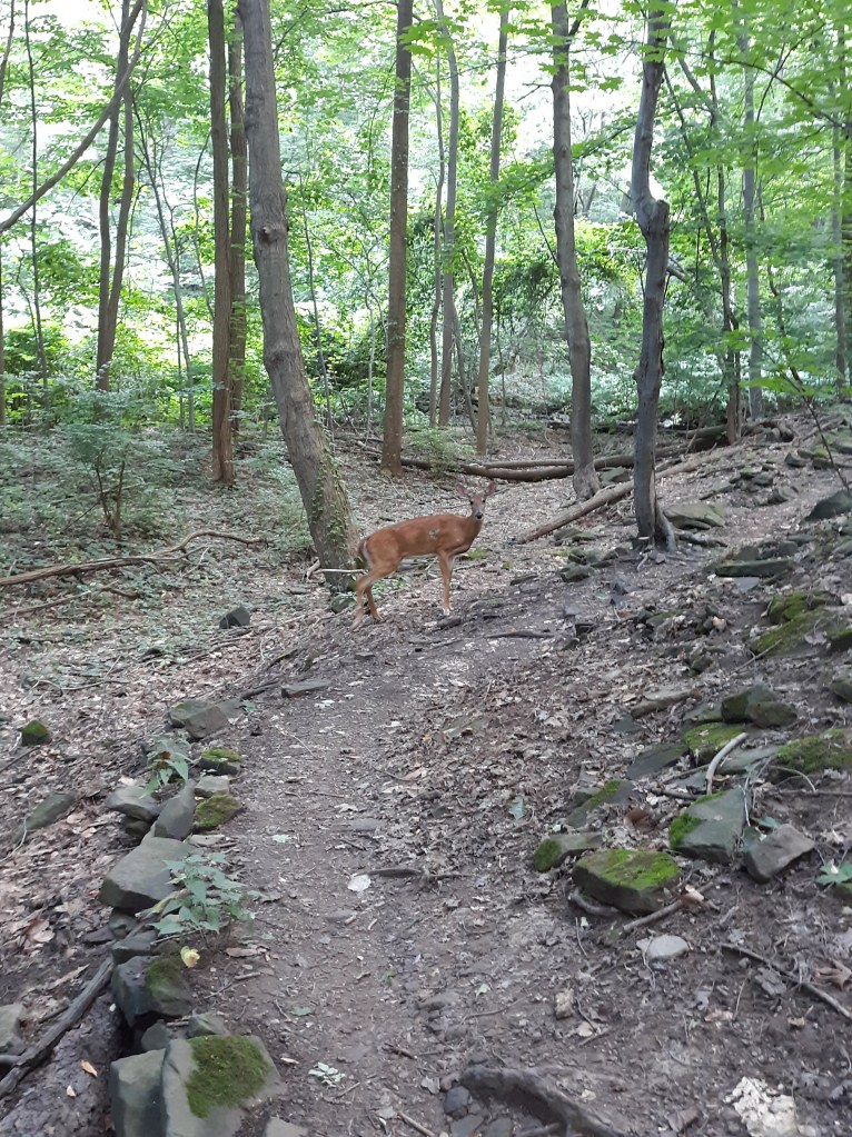 Young deer walking by